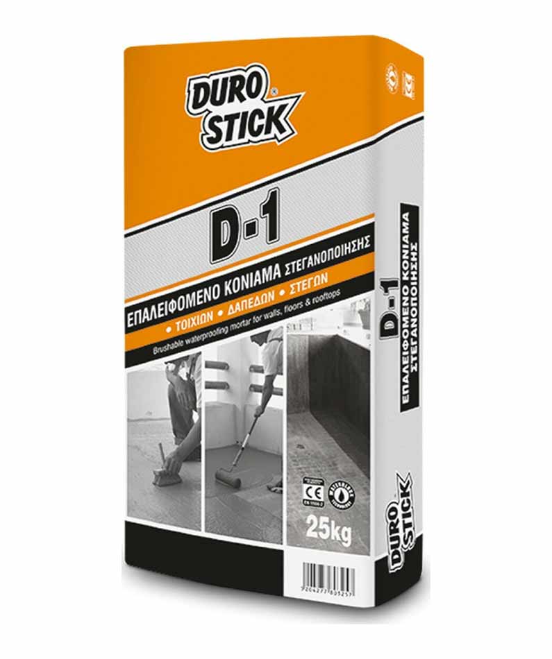 Το D-1 της DUROSTICK είναι κατάλληλο για θετικές (εξωτερική εφαρμογή, προληπτικά) και αρνητικές (εσωτερική εφαρμογή, για επισκευή) υδροστατικές πιέσεις.